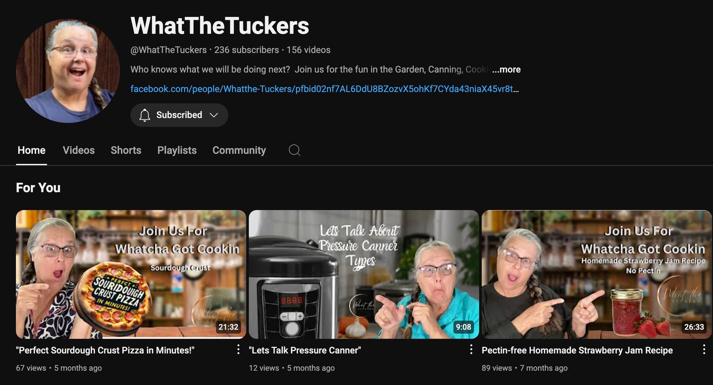 What the TUCKERs is your engaging slice of life channel where everyday moments turn into extraordinary stories. Join Charlene as she share their journey through gardening, cooking, and a variety of heartfelt, anything-goes adventures. Each episode is infused with humor, practical advice, and a down-to-earth approach to living a faith-filled life. Whether it's mastering a new recipe, tackling a home improvement project, or exploring the great outdoors, What the TUCKERs invites you to find inspiration and joy in the simple pleasures of life.