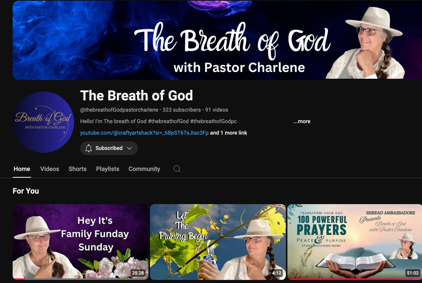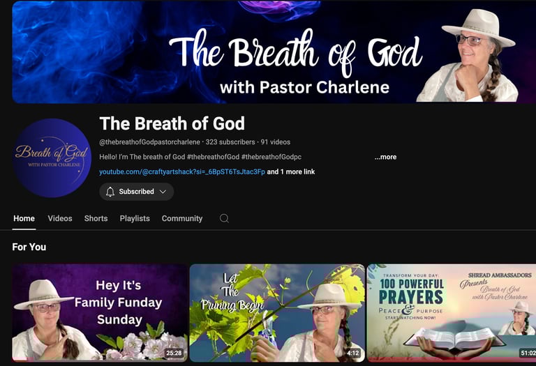 Step into Pastor Charlene Tucker’s world of creativity, faith, and inspiration. Through CraftyArtShack, she brings hands-on joy to life with DIY projects, artistic tutorials, and faith-infused crafting designed to inspire creativity and purpose. On BreathofGod with Pastor Charlene, Pastor Charlene shares uplifting, Spirit-led messages to help you grow deeper in faith and discover divine wisdom for everyday life. For a touch of humor and heart, join her family adventures on WhattheTUCKERs, where faith meets fun and real-life stories remind us that God’s grace is present in every moment.
